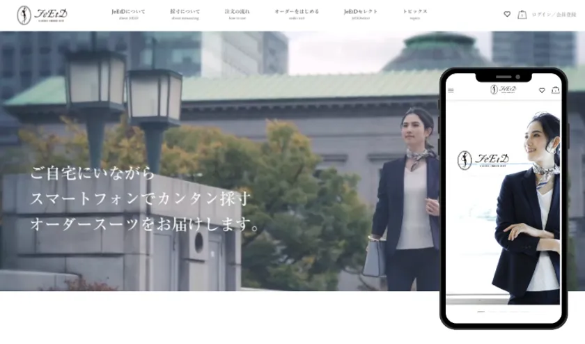 2年の開発期間を経て、ついに完成したスマホ採寸システムを使ったレディースオーダースーツブランド「JeEtD(ジュエディ)」。創業45年の高い縫製技術で展開する高品質なオーダースーツを、リーズナブルな価格で誰でもカンタンにスマホ1つで注文できるようになりました。