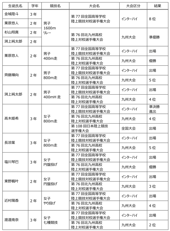 【 陸上競技部成績 令和6年度(2024年度)】
