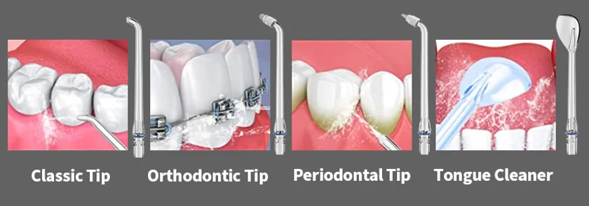 ●強弱6段階のジェット水流モードを備え、最大1400PSIもの水圧と、毎分1,600回もの高速噴射で歯間や歯周ポケットの食べカスや歯垢を強力に取り除きます。