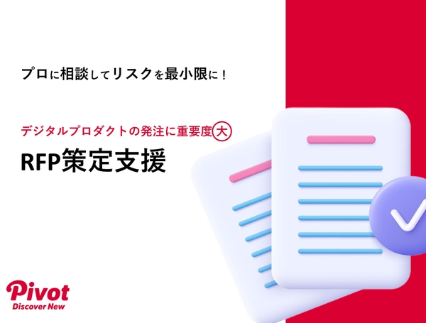 株式会社PIVOT(URL: https://pivot.jp/ 所在地:東京都 港区、代表取締役社⻑:宮嵜 泰成)は、デジタルプロダクトにおける「ユーザーの最高体験」を追及、WEBサイト制作、アプリ開発、システム開発のUXデザイン、UI改善、企画から実装、運用に至るまでワンストップでサポートさせていただいているプロフェッショナル集団です。無料でダウンロードいただける「RFP策定支援」に関する資料を2024年7月1日に公開いたしました。サービス紹介やスケジュール、費用感もご紹介しています。