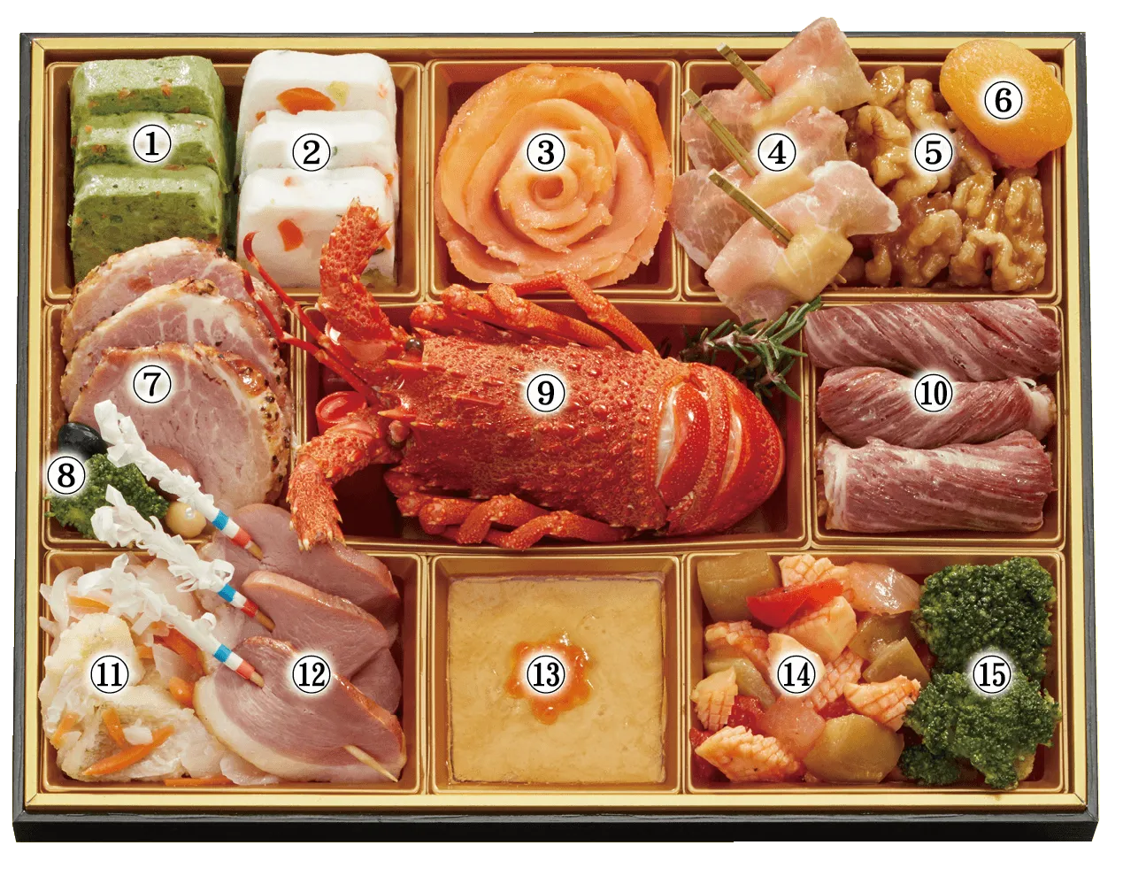 9.ボイルロブスター(ソース付) 10.スモークビーフ