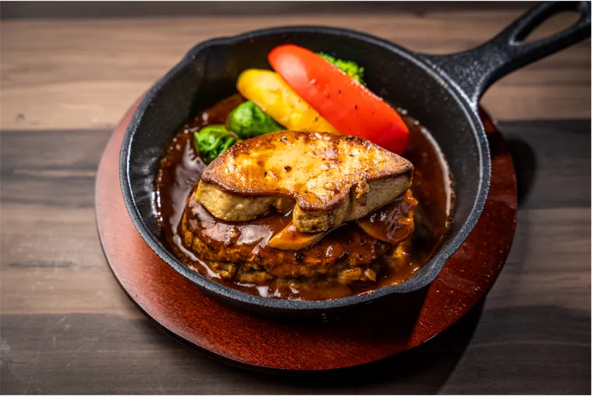 ハンバーグにフォアグラを乗せたロッシーニ風ハンバーグ