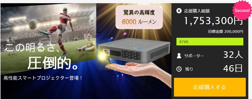 【Makuake開始後24時間で目標の800%達成】 「昼間でも明るい大画面」の高性能スマートプロジェクター 11月25日より販売開始