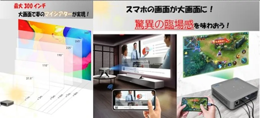 (2)最大300インチまで拡大できて夢のマイシアターが実現