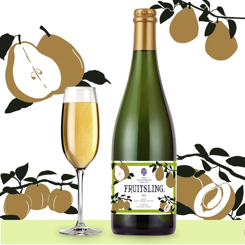 洋梨の甘い香りとみずみずしさを杏子の酸味が引き立て、爽やかな風味が楽しめる発泡性フルーツカクテルです。甘すぎず上品なスパークリングワインのような味わいに仕上げました。