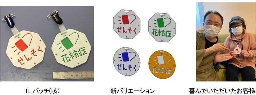 昨年1月、知人が困っていることに相談を受けたことからから製作に至った新型「ILバッチ(咳)」。