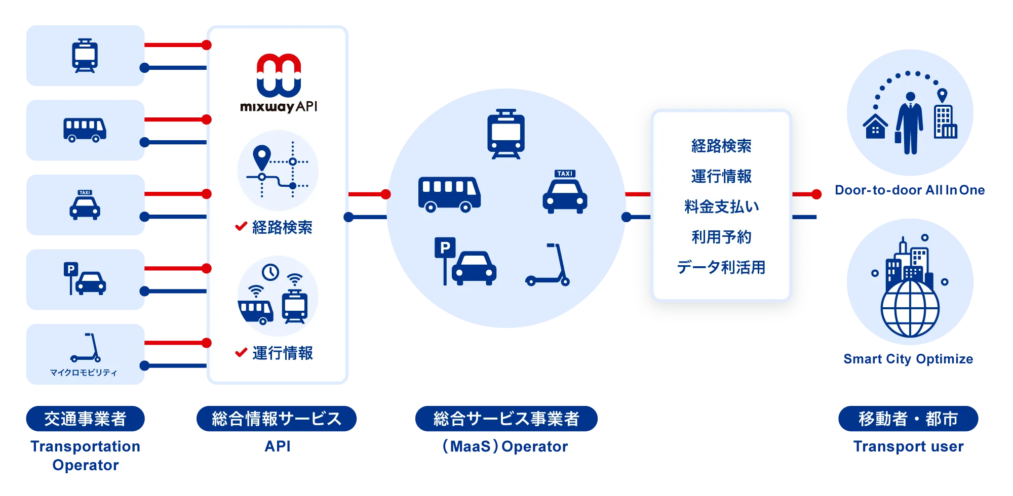 MaaSアプリや実証実験で多数の採用実績があるmixway APIを提供