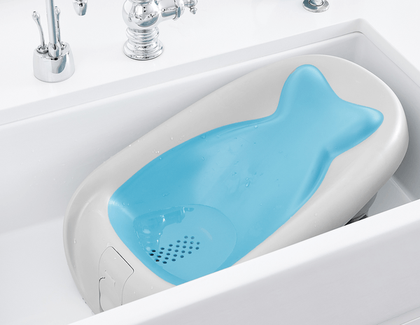 新生児から6カ月頃まで使えるクジラモチーフのベビーバスチェア。