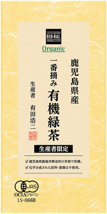 有機JAS認証を取得した鹿児島県産一番摘みの茶葉。生産者限定で、鹿児島県鹿屋市輝光町の茶畑で有田浩二さんが大切に育てた茶畑で収穫された茶葉のみを使用しています。