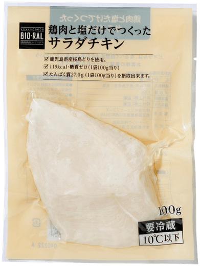 大人気商品「BIO-RAL 鶏肉と塩だけでつくったサラダチキン」はむね肉を使用しているため、余剰となったレバーを活用した商品を開発。原料消化のバランスを取ることで、食品ロス削減につなげています。