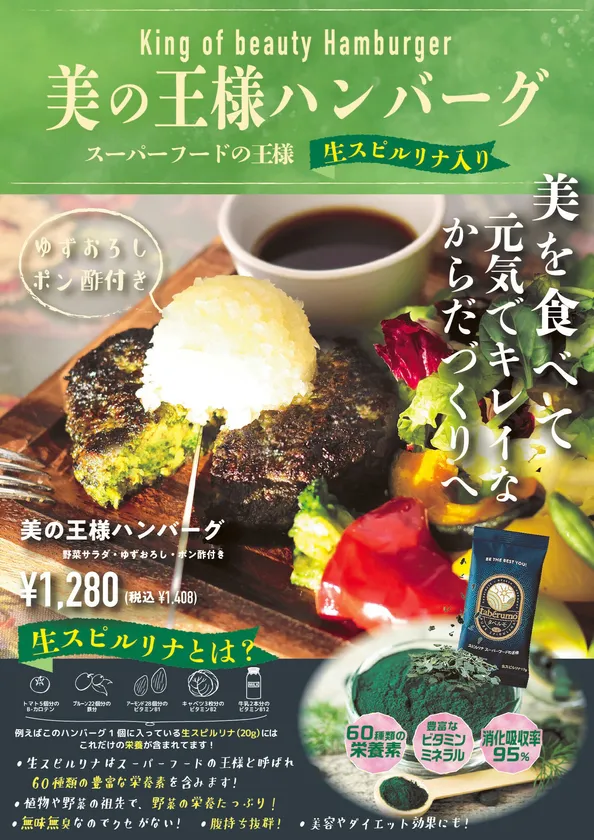 スーパーフード生スピルリナ「タベルモ」と 「マ・メゾン」とのコラボレーションによる 『美の王様ハンバーグ』期間限定販売!