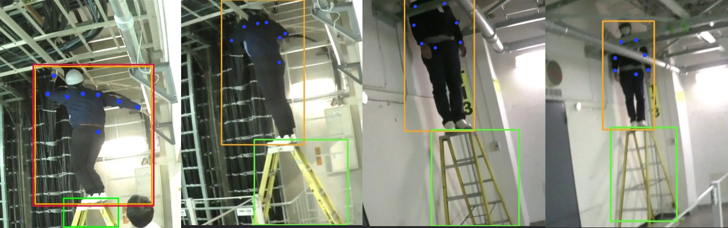 (図3)AIが人間の骨格情報や脚立の位置を検知する様子