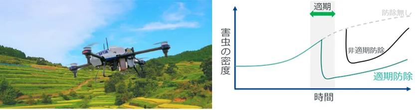 圃場別デジタル解析によるドローン適期防除サービス、 最適な時期に農薬散布を実施し使用頻度を抑えた高品質、低コストな農業を実現