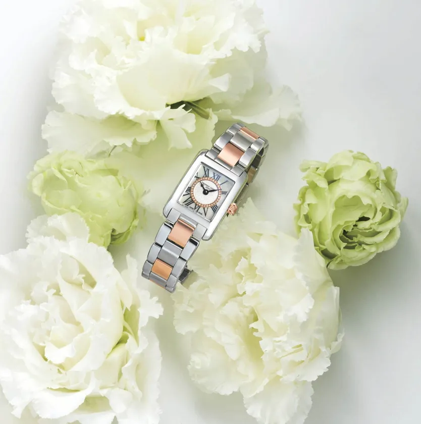 レディースモデルは、タイムレスで洗練された佇まいの「クラシック カレ レディース」。フレデリック・コンスタントのレディースコレクションにおいて圧倒的な人気を誇る腕時計です。