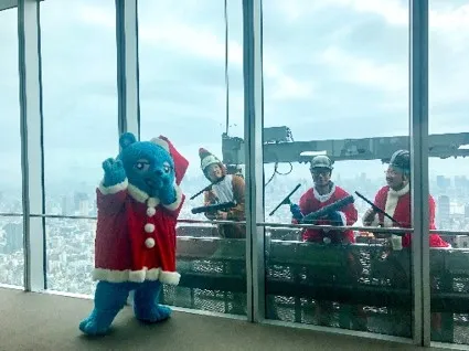 日本一高いビル「あべのハルカス」で サンタクロースやトナカイが窓拭き! ~12月1日(水)から22日(水)までのうち 9日間実施します~