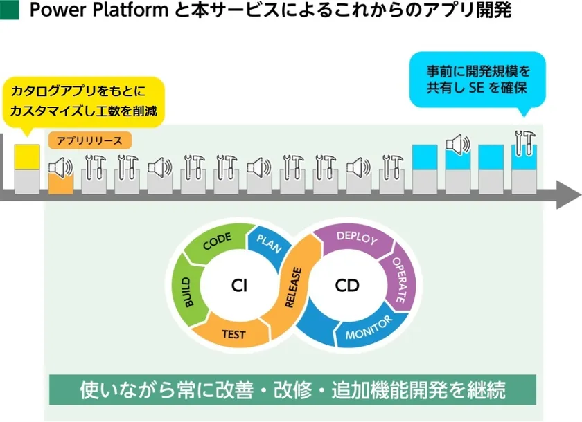 Power Platformと本サービスによりアプリ開発からガバナンス対応等の運用まで、お客様のPower Platform活用を継続的に支援します。サービスサイトは、こちらからご確認ください。