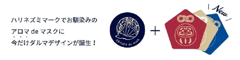アロマdeマスクの元々のシンボルマークであるハリネズミに加え、数量限定で必勝ダルマのデザインを展開