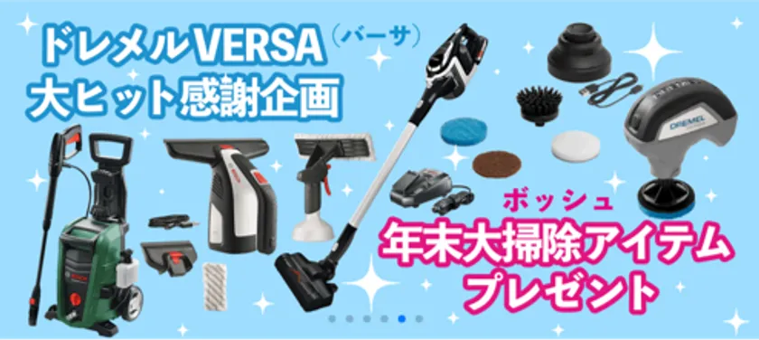 また、「DREMEL VERSA(ドレメル・バーサ)」の大ヒット感謝特別企画として、年末の大掃除に便利なボッシュお掃除アイテムが抽選で当たるプレゼントキャンペーンを2021年12月12日まで開催しております。