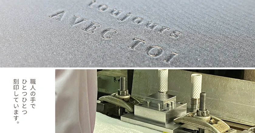 商品名でもある「toujours AVEC TOI」はフランス語で「いつまでもあなたのそばに」という意味であり、長く使っていただきたいという思いを込めています。刻印の深さを微調整したのも関市の方々が苦労した箇所の一つ。深さにより見栄えが違ってまいります。