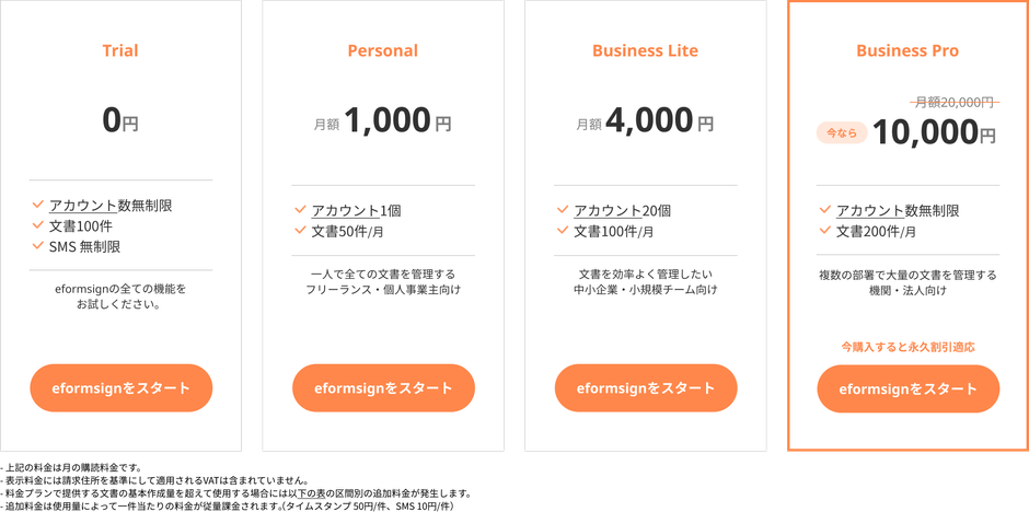 eformsignはサブスク形式で、部署間・フリーランスでも導入しやすい料金体系になっています。