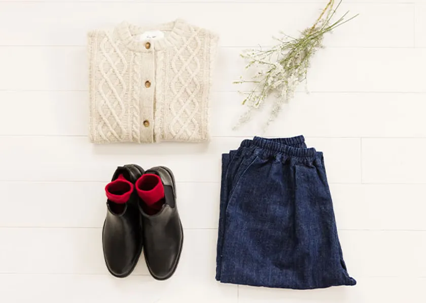 冬に麻?とよく思われますが、麻の繊維は空洞を含んでいるため、暖かな空気をしっかりと包み込み、保温性を高める効果があります。ウールなどの冬素材と上手に重ね着することで、さらに保湿効果を発揮してくれます。