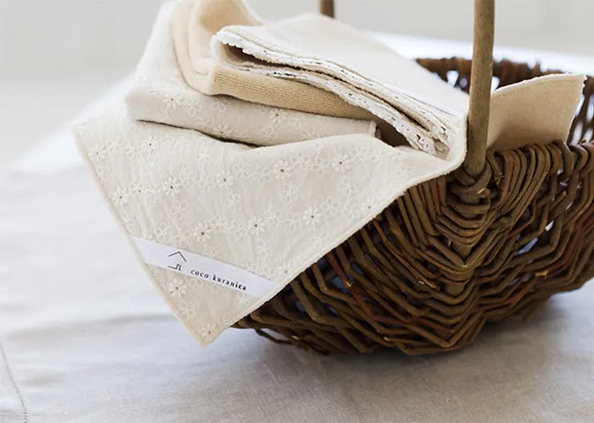 サスティナブルやエシカルといった、地球環境や人に優しいものづくりを目指すCrea deliceでは、品質の良いリネンと知られるフランス産の糸を使用しています。環境や生産者に配慮したオーガニックリネンの生地は、洗うほどに風合いが出て肌なじみが良く、日常のスタイリングにそっと寄り添います。これが、素材の良さへのこだわりです。