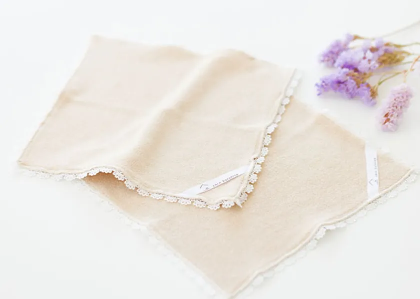 ポップアップショップにて商品をお買い上げのお客様に、「コットン100%の綿糸を使用したレース使いのハンカチ」をプレゼント!