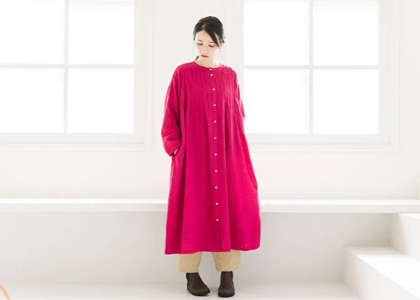 オーガニックリネンピンタック前開きワンピース(¥9,790)税込