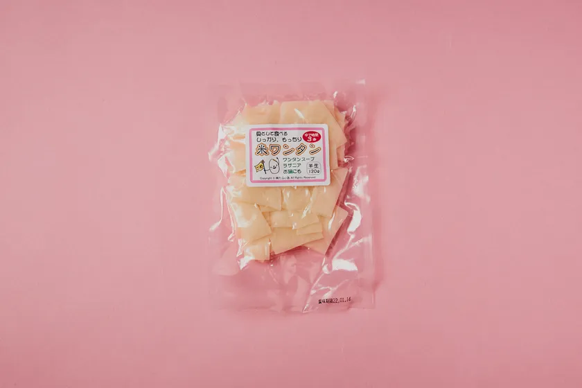 いわき市産のこしひかり100%から生まれた、短冊型の半生米ワンタン。わずか3分で茹であがるため、お鍋の途中でさっと追加するだけでボリュームアップ。もっちりと食べ応えのある食感は、ちょっと食べたいときのお鍋のシメにもぴったりです。