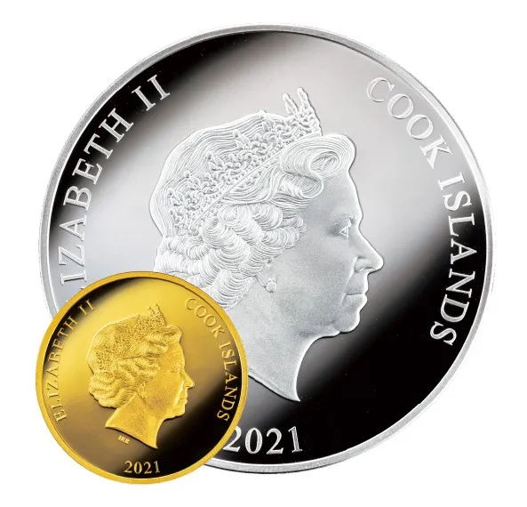 このたびデビュー10周年を迎え、美しい記念コインにその姿が刻まれました。エリザベス女王を元首に戴く英連邦クック諸島の法定貨幣として、限定数のみ発行された貴重なカラー金貨・銀貨です。