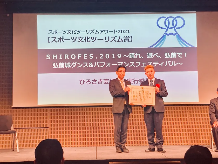 11月30日浅草橋ヒューリックホール(東京都)にて、スポーツ庁、文化庁及び観光庁共催の「スポーツ文化ツーリズムアワード2021表彰式」が開催され、青森県弘前市にあります「ひろさき芸術舞踊実行委員会」が主催する「SHIROFES.」が国内最高賞となる「スポーツ文化ツーリズム賞」を受賞しました。