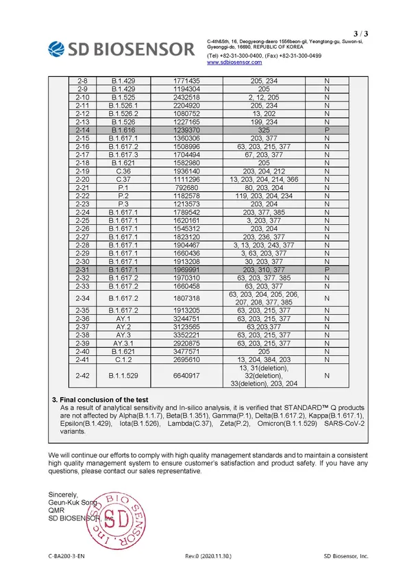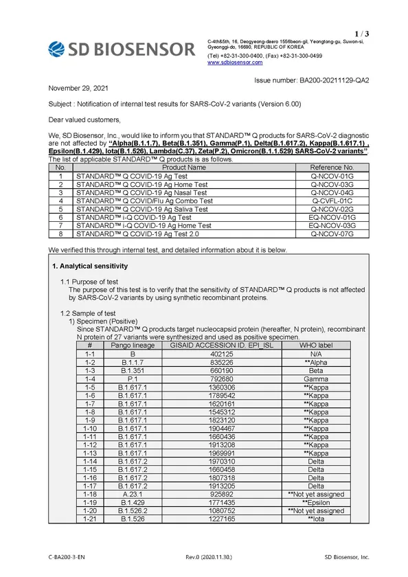 体外診断用医薬品承認を取得しているSD BIOSENSOR社製抗原検査キットが オミクロン変異株に対応