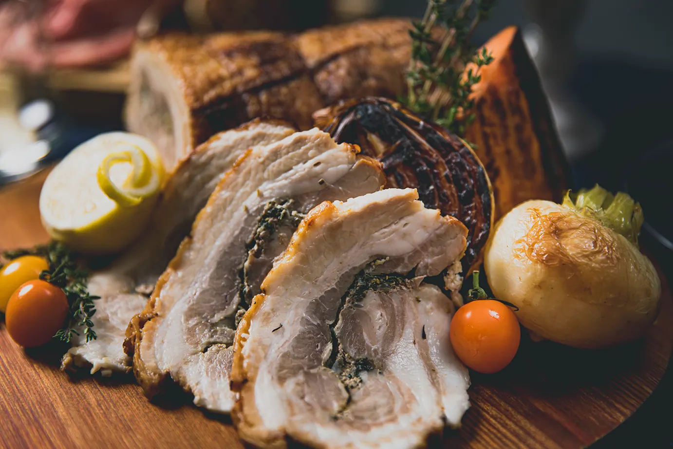 皮はパリパリ、中はジューシーなイタリアの伝統的なポークローストで、ローズマリーなどのハーブとニンニクの風味を効かせ丁寧に焼き上げ。1皿1皿シェフが目の前で仕上げご提供いたします。