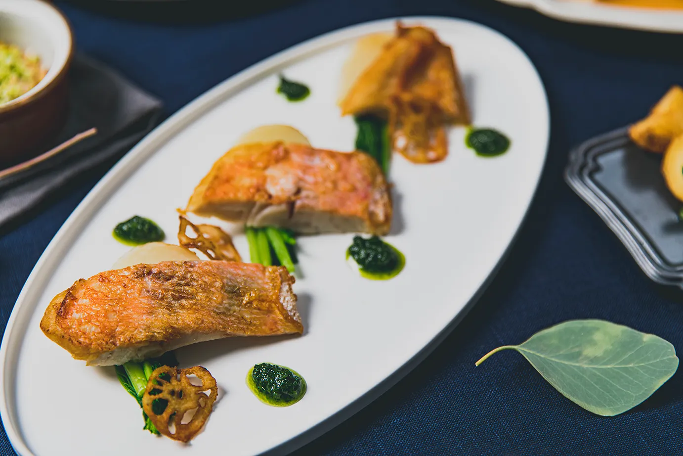 「金目鯛のソテーと蕪のロースト サルサヴェルデソース」