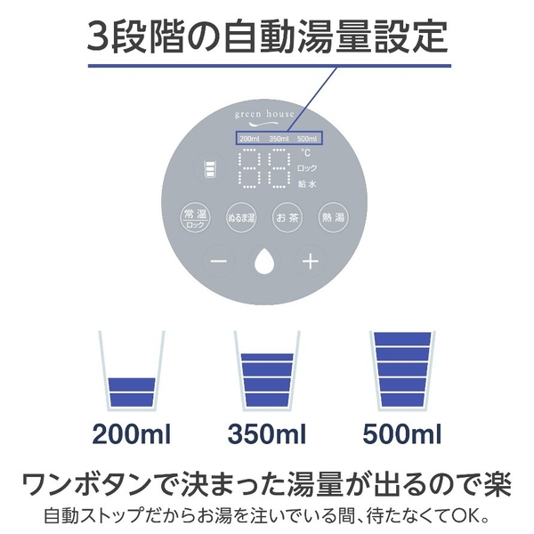 ■3段階の自動湯量設定(200ml・350ml・500ml)