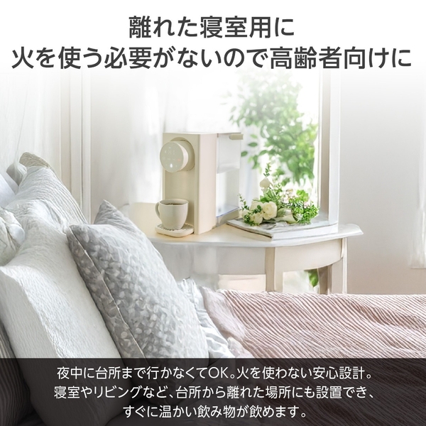 電気ケトルのように沸騰を待つ必要がなく、すぐにコーヒーやカップ麺などが作れます。