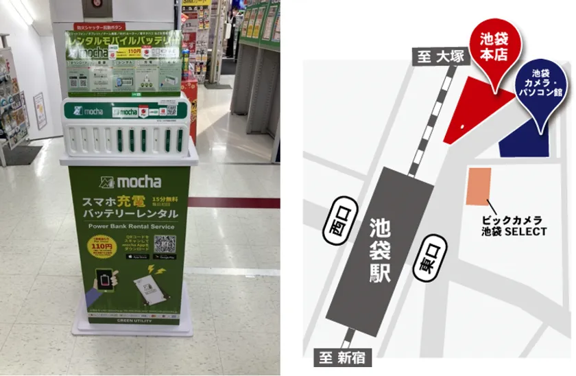 2021年12月1日より、GREEN UTILITY株式会社(本社:東京都新宿区、代表取締役:李 展飛)は、提供している「mocha」モバイルバッテリー・シェアリング充電サービスを株式会社ビックカメラ(本社:東京都豊島区、代表取締役社長:木村 一義、以下 ビックカメラ)に導入し、ビックカメラ池袋本店とビックカメラ池袋カメラ・パソコン館に設置しましたことをお知らせいたします。