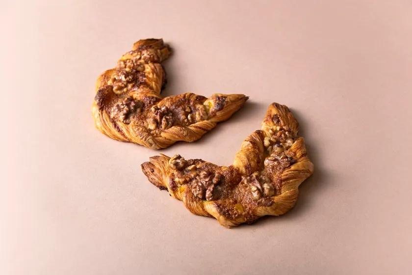 ほろ苦い自家製コーヒークリームをデニッシュ生地に巻き込み、くるみをのせて焼き上げ、仕上げにチーズグレーズをコーティングしました。コーヒーの苦みとミルク感のあるチーズグレーズの甘味のバランスが絶妙であり、香ばしいくるみの食感がアクセントになっています。PASCO SPECIAL SELECTION(R)の中でも売り上げ上位に入る人気商品です。