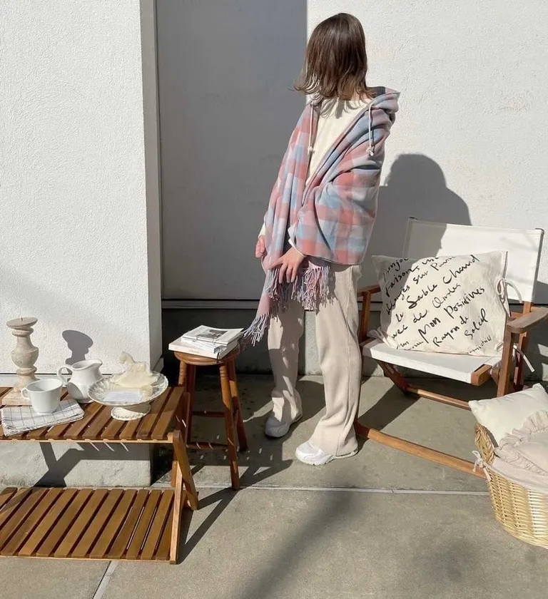 ポンチョ・クッション・ブランケットに! ~かさばるブランケットをインテリアとしても活用し収納いらず~