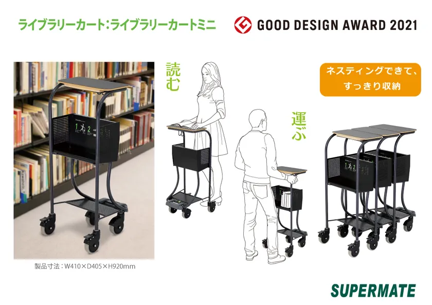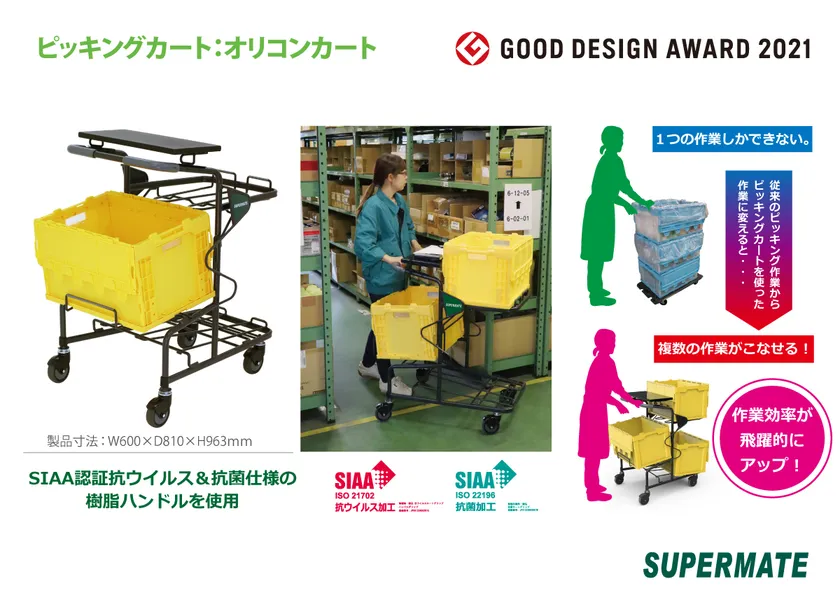 株式会社スーパーメイト(本社:岐阜県羽島郡笠松町、代表取締役:山下 定良)は、ショッピングカート「SavingCart」、ピッキングカート「オリコンカート」、ライブラリーカート「ライブラリーカートミニ」の3機種で、2021年度グッドデザイン賞を受賞いたしました。