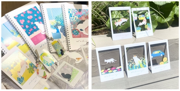 会場内には、スナップ写真に見立てたフォトスポットのほか、猫のパネルをいくつか配置し、「猫といる風景」を感じられる空間演出もお楽しみいただけます。また、展示にあわせたオリジナルグッズは、キンコーズのオンラインショップ「kinko’s fab」にて、7月28日(月)から8月31日(日)まで販売予定です。