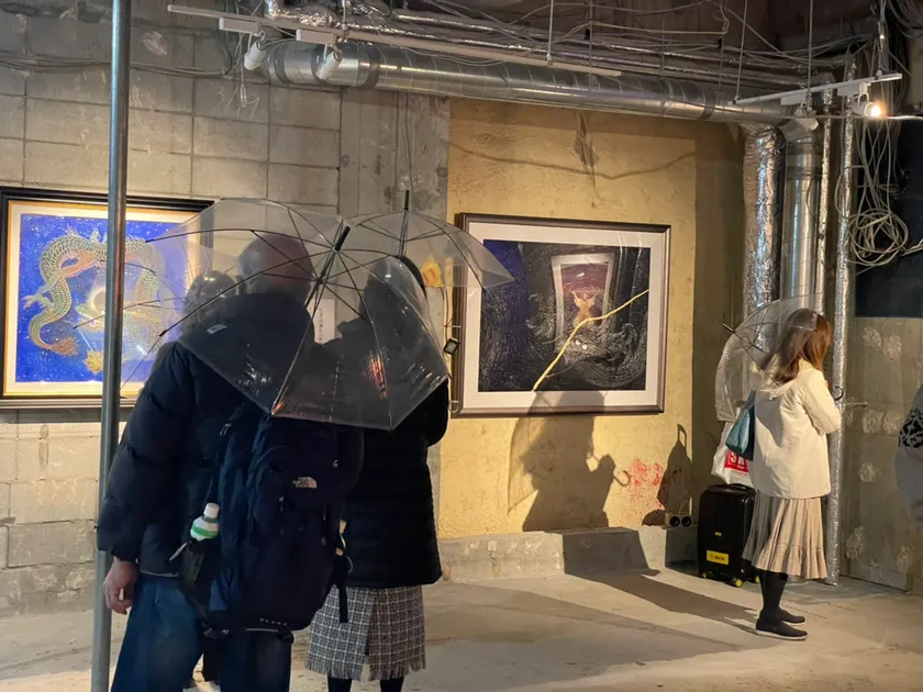 ■前代未聞の傘をさして鑑賞する展示会、草場一壽陶彩画展「龍と復活の女神たち」、大盛況で開催中!