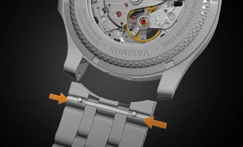 カリブルヌスIIをはじめ、VALIMORの腕時計ベルトはすべてクイックリリースピン仕様となっています。