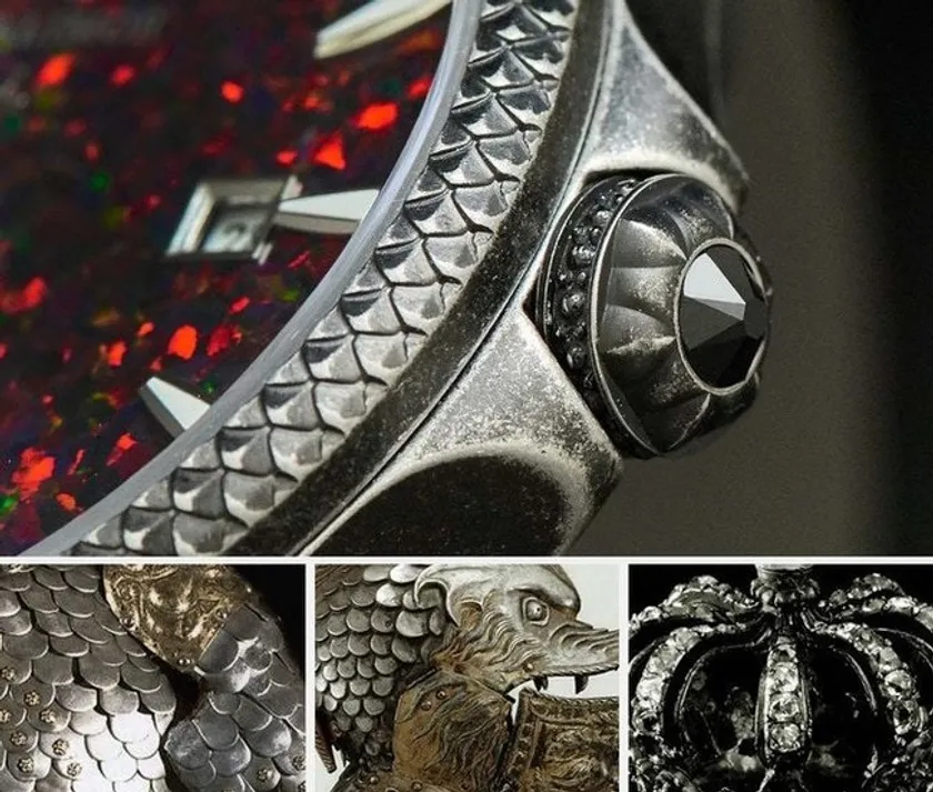 中世騎士物語からインスパイアされたデザインは、時計の随所にちりばめられています。