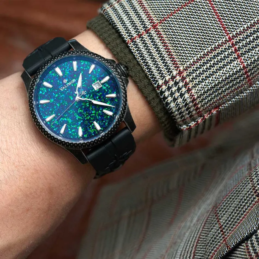 CAX01.A…グリーン 日本で1年以上管理培養した天然オパールを宝石のような輝きを放つ文字盤として使用