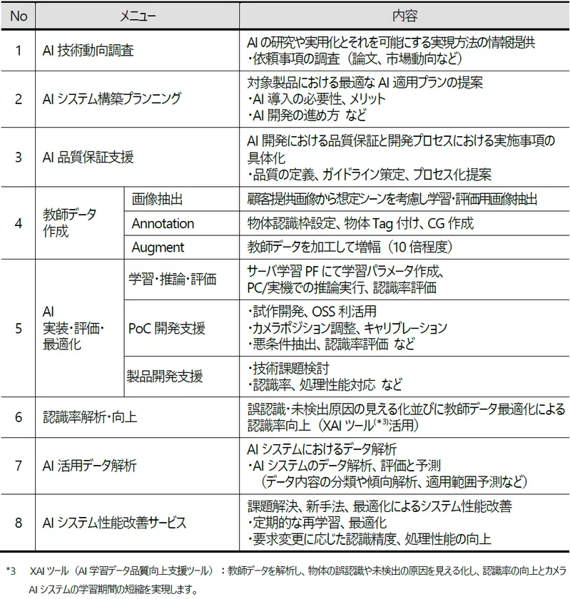 ■「画像認識AIシステム構築コンサルティングサービス」メニュー