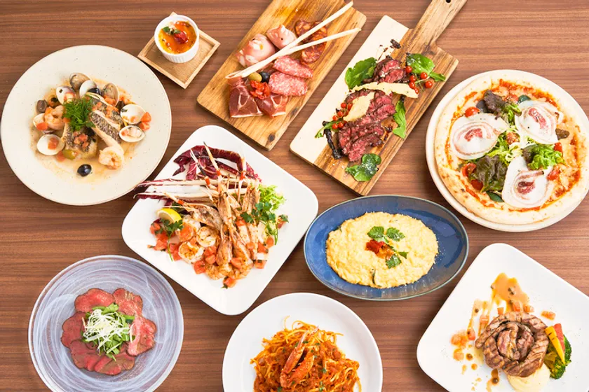 北斎麦酒工房はイタリアントラットリアとして定番のピザやパスタと共に、あえてA5等級ではなく、クラフトビールに合うお肉としてA4等級の黒毛和牛を使った『イタリアン寿司』や、黒ビールでじっくりと煮込んだラム肉の上にハーブを乗せ、ご提供時に火をつけて香り付けをする『ラムシャンク黒ビール煮込みスマッシングハーブ』などここでしか味わえない料理まで幅広く提供しています。