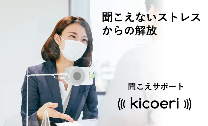 新型コロナウイルスの蔓延で、スーパーのレジや病院の受付等様々な場所で感染防止のビニールシートやアクリル板が人々を仕切り、マスクを着用して会話をすることが当たり前の光景となりました。お客様と接客スタッフの安全と引き換えに、お互いの声が「聞き取りづらい」ストレスが日常的に増えています。聞こえサポート「kicoeri(キコエリ)」は、そのような「聞き取りづらさ」を解決するために開発した「世界初」の第5世代パーティション取付型双方向会話アシストシステムです。