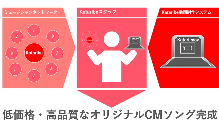 さらに「ミュージシャンネットワーク」と「動画制作システム」をカタリベスタッフが活用することでCMソング制作を社内リソース化し、大幅なコストダウンを実現しました。