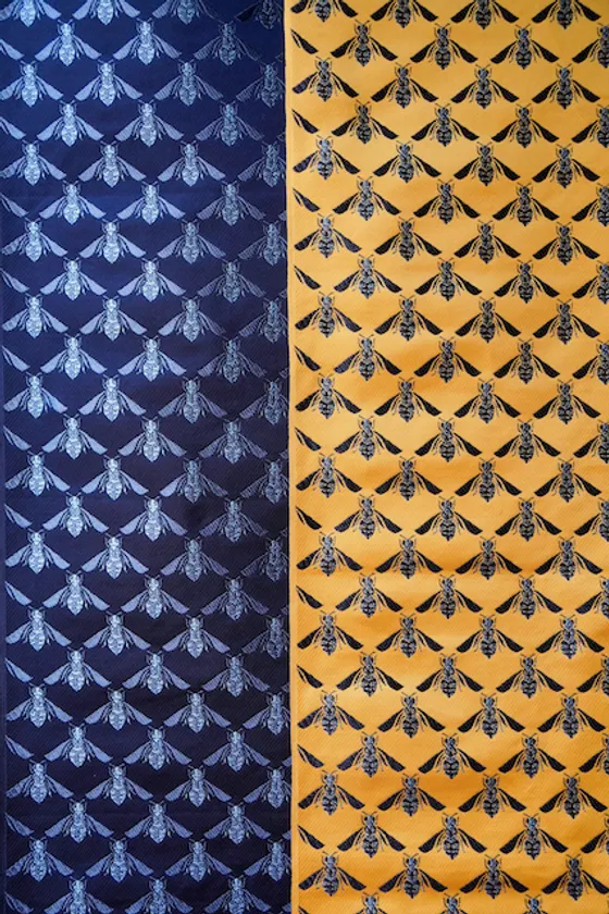 「ルリモンハナバチ帯」税込99,000円(仕立て代、ガード加工代込) 青/黄の2種類